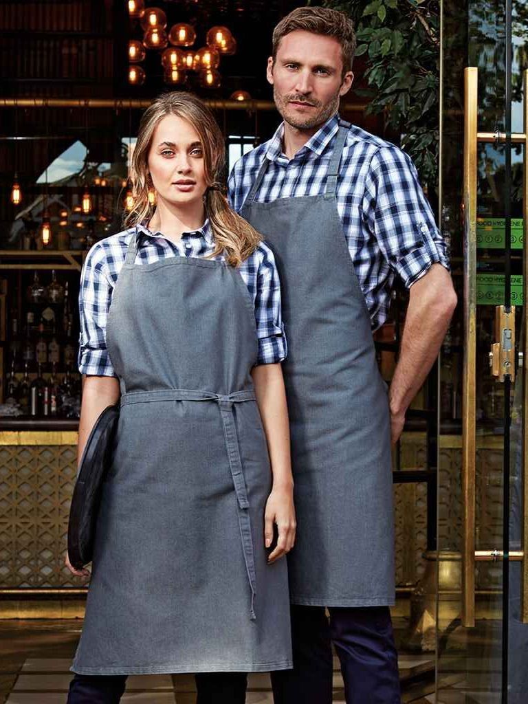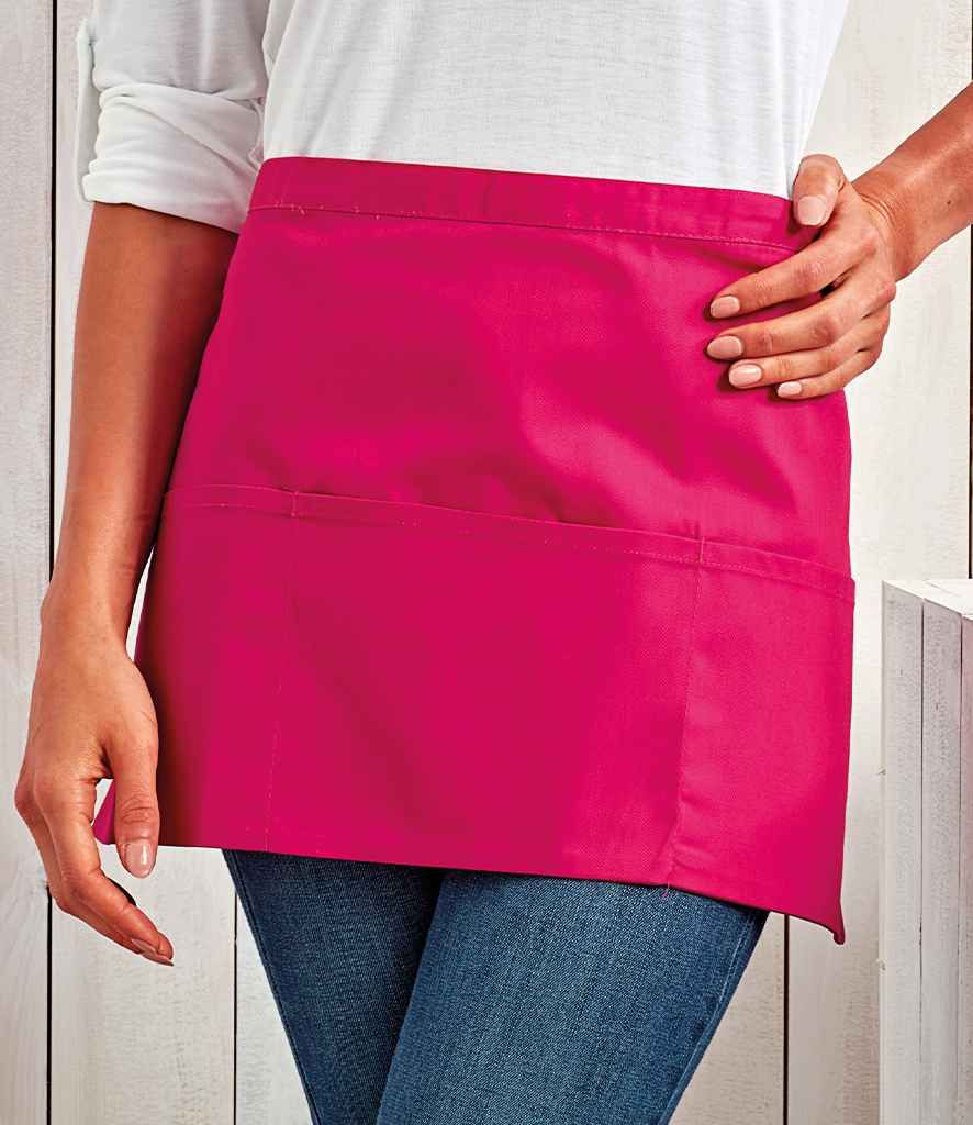 A popular style of Apron seen in many bars and restaurants, this short waist apron has three open pockets and comes in 28 colours from the Premier 'Colours Collection’.