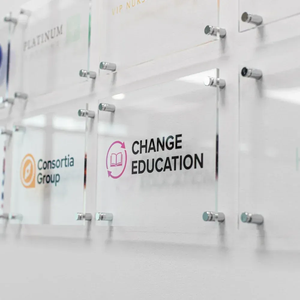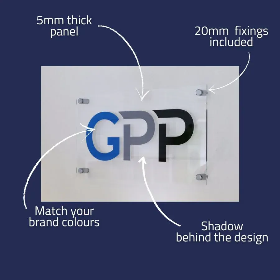 Our acrylic panel signs are direct printed with UV ink and backed up with Spot white ink for incredibly vibrant and crisp colour and details. These signs are used by hundreds of businesses to be one of the first things visitors see when visiting the office - so make an impact as first impressions count. These sign panels are made with premium clear acrylic and come with 4 satin stand off fixings for easy install in just 10 mins.