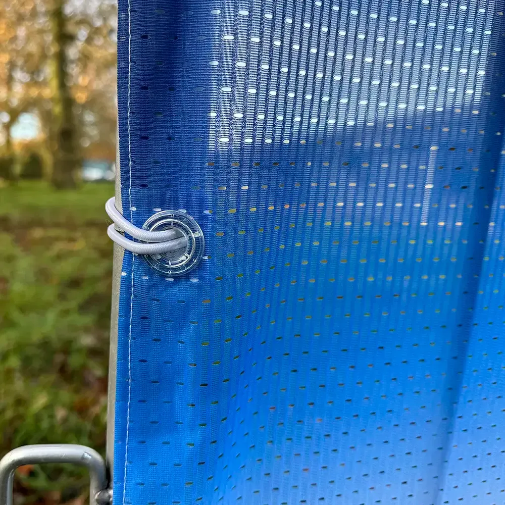 110gsm Air-Mesh Polyester: A lightweight yet strong and breathable fabric that reduces wind resistance. It is printed and finished in-house using our state-of-the-art EFI VUTEk FabriVU 340i. This material is ideal for short-term use and is easy to transport. It has an air permeability rating of 4,510 mm/s and is B1 fire-rated.