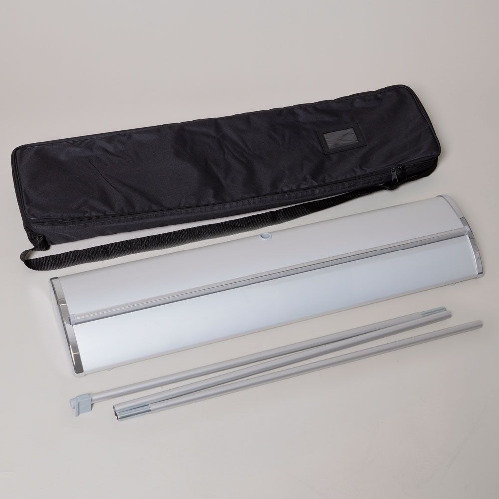 • Each banner comes in a stylish aluminium case with chrome end plates, weighing approximately 5kg for stability and easy transport.
