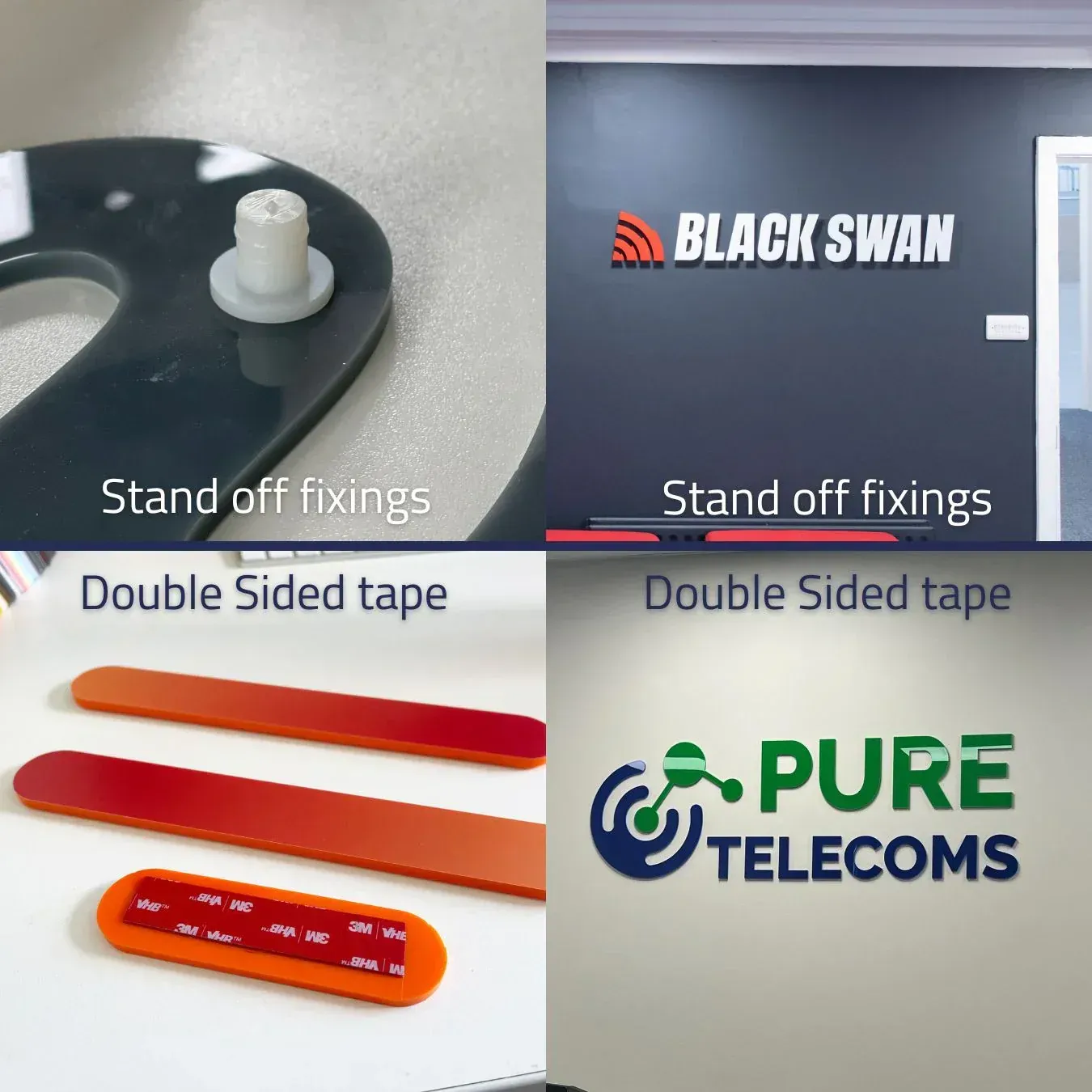 Our custom printed acrylic 3D logo's are perfect for any brand who's logo is a specific brand colour, or has a detailed design, we are able to print and cut the logo perfectly in your brand colour. Add a wow factor to a feature wall in your office, reception desk or other surface.