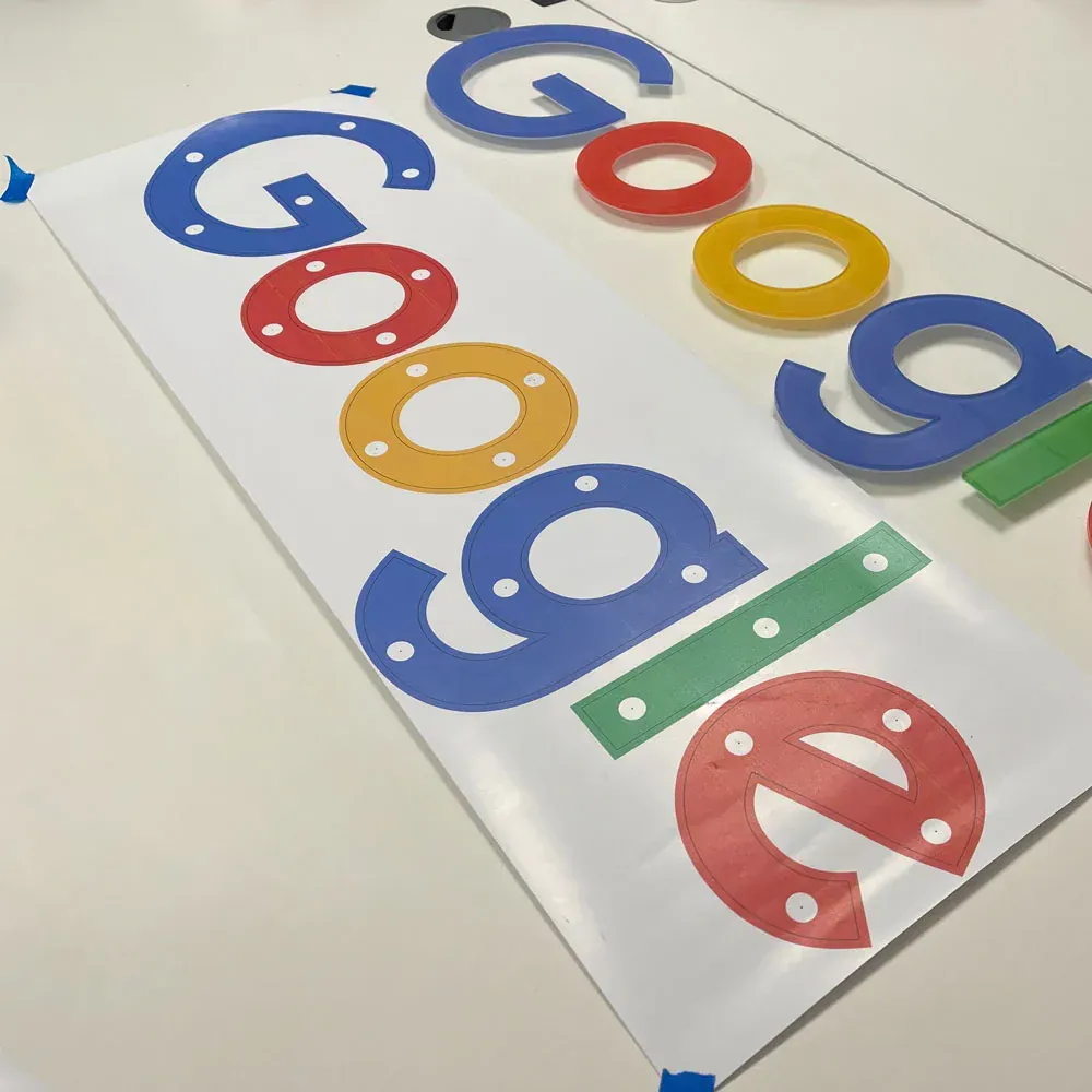 Our signs are direct reverse printed onto clear acrylic and sandwiched between another layer of acrylic on the back to encapsulate the print and protect it. They are then laser cut which seals the edges of the sign making them suitable for indoor and outdoor use. The longest edge is based on the whole design - So the full width or height of the logo.