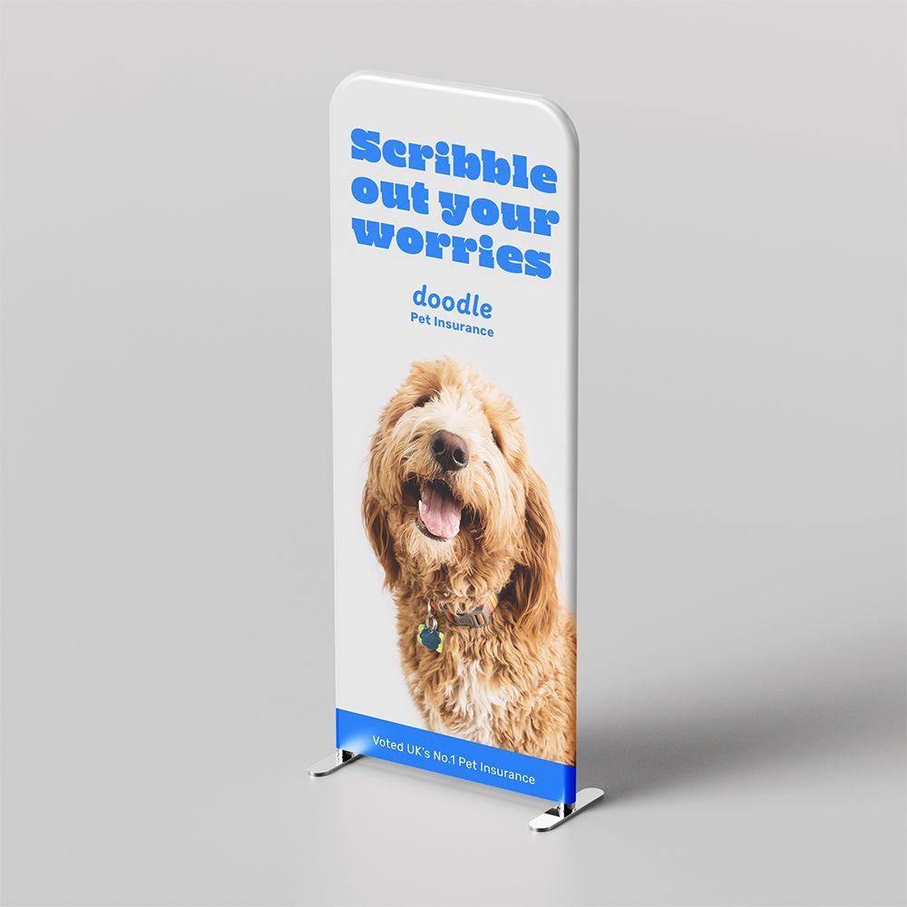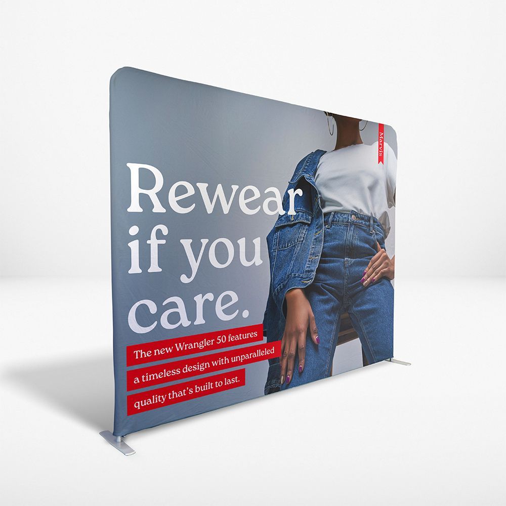- Printed on double-sided stretch polyester, these displays feature vibrant graphics that effectively showcase your client’s brand.